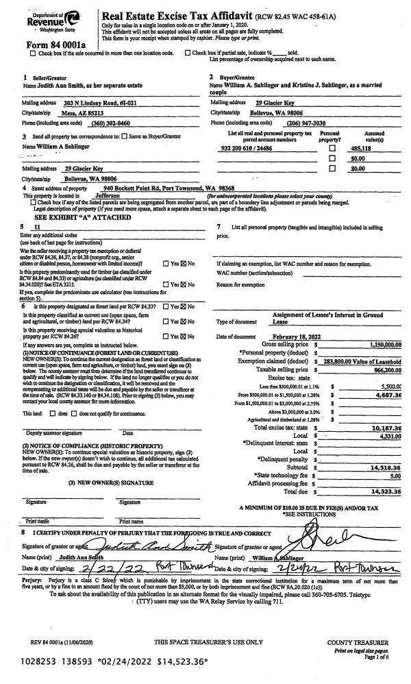 | Mailing Address: | MICHELLE SCHUMAN TRUSTEE 892 19TH ST PORT TOWNSEND, WA 98368 | % Ownership: | 100.0000000000% |