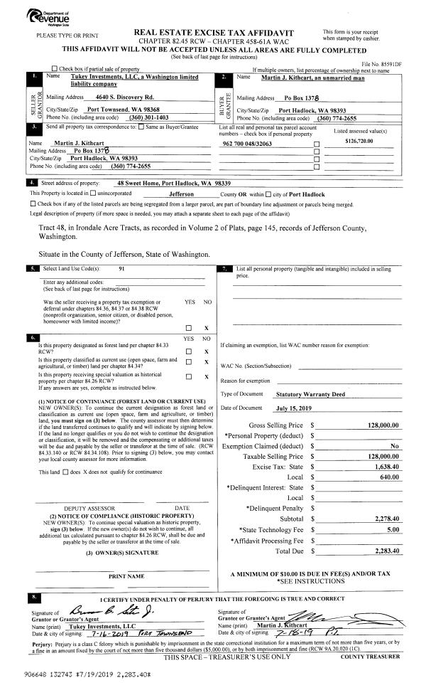 | Mailing Address: | 1467 20TH ST PORT TOWNSEND, WA 98368 | % Ownership: | 100.0000000000% |