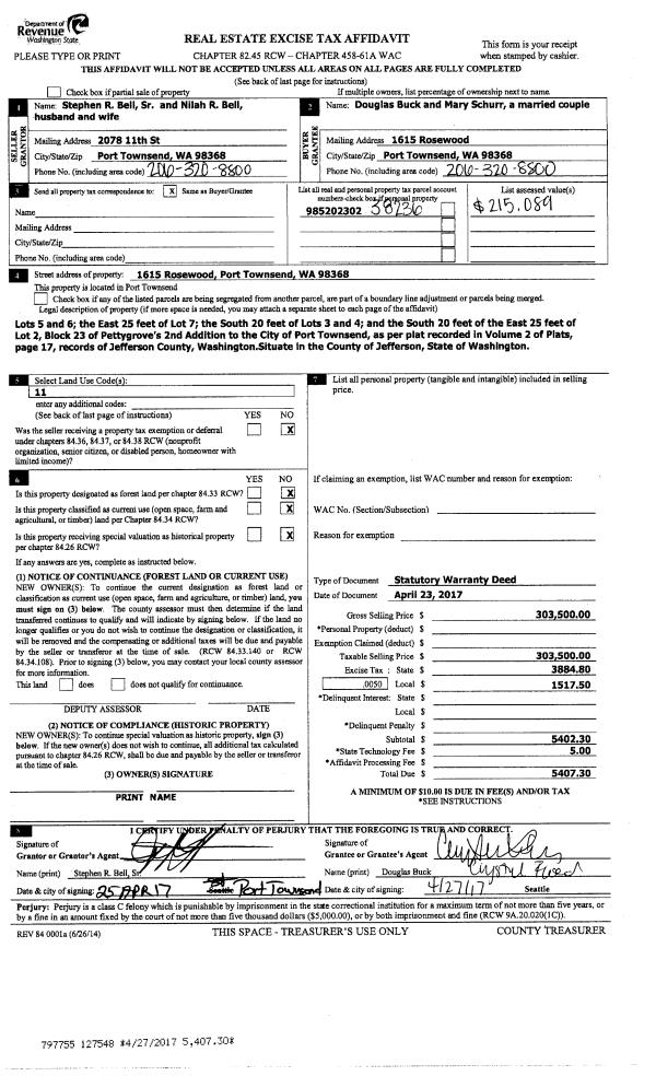 | 2 | 10/09/2017 | SWD | Statutory Warranty Deed | TOWNSEND MEADOWS COOPERATIVE | CLAUS I & PHYLLIS R DOLPH | | | $401,032.00 | 128785 | |