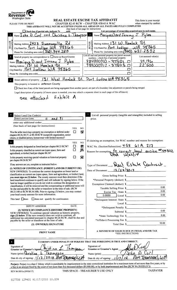| 1 | 9883-4175S | Quimper Village Condos w/Utilities/Common | 0.0000 | 0.00 | 0.00 | 0.00 | 1.00 | $198,000 | $0 |