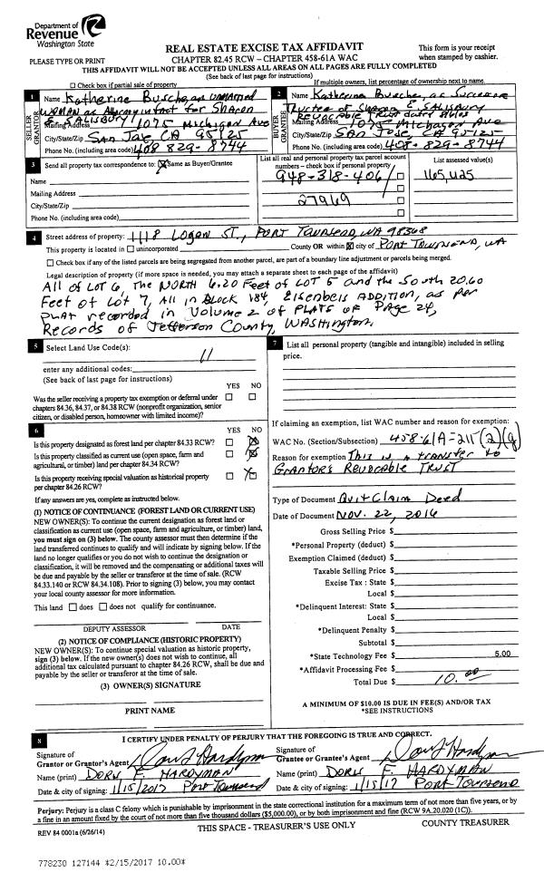 | Mailing Address: | 4545 MCNEILL ST PORT TOWNSEND, WA 98368-2105 | % Ownership: | 100.0000000000% |