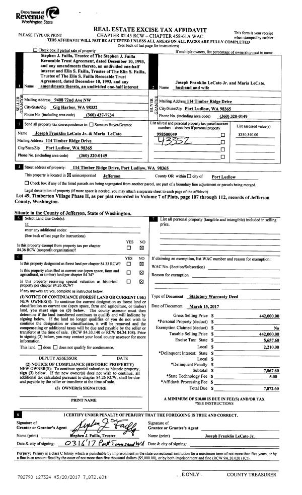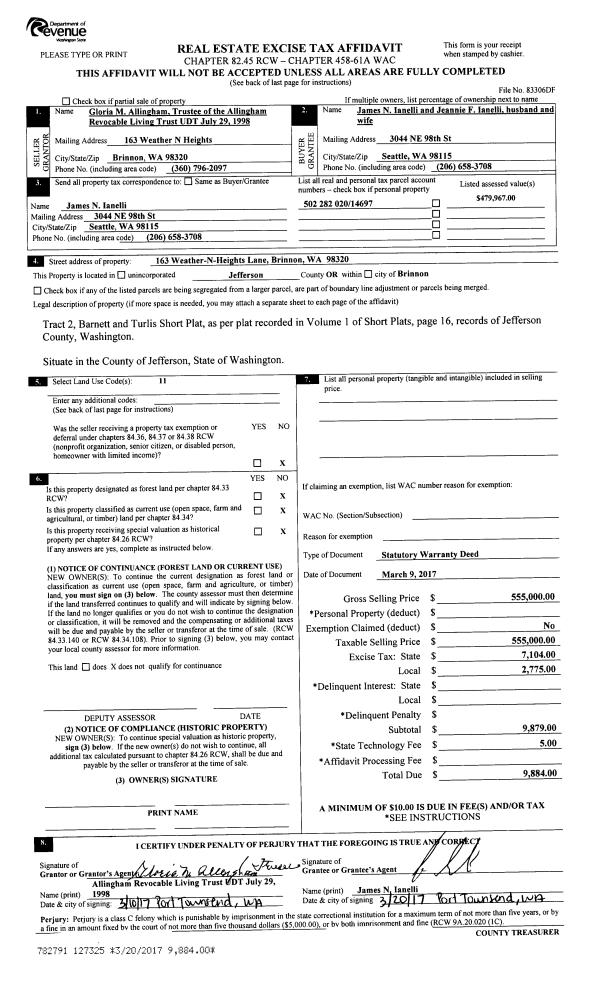 | 2 | 05/24/2017 | SWD | Statutory Warranty Deed | ANTHONY & BETTY HARRIMAN | LAURA M HARDYMAN | | | $332,000.00 | 127741 | |