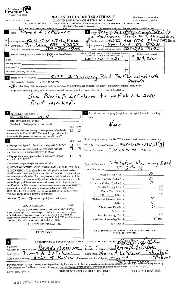 | 1 | 09/20/2019 | SWD | Statutory Warranty Deed | LAURA M HARDYMAN | JEANNICE A MIDDAUGH REVOCABLE TRUST | | | $387,000.00 | 133219 | |