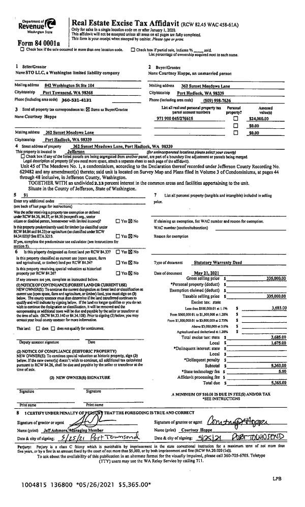 | 8 | 08/08/2001 | SWD | Statutory Warranty Deed | OLYMPIC WATER AND SEWER, | PORT LUDLOW ASSOCIATES LLC A W | 0 | 0 | | 0 | 0 |