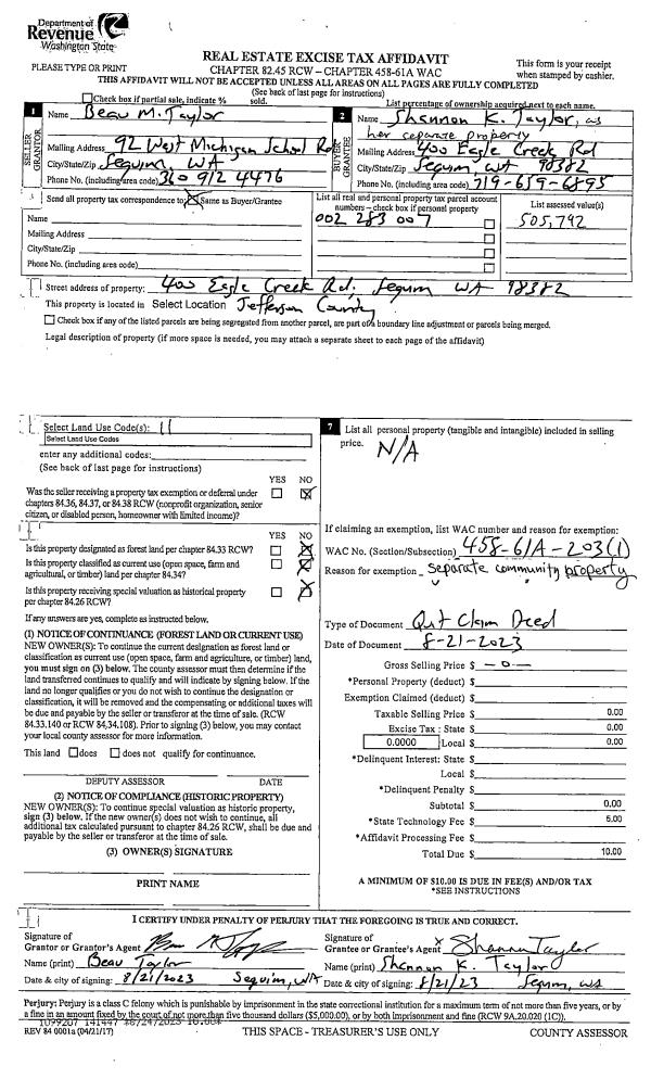 | 1 | 10/06/2025 | SWD | Statutory Warranty Deed | GEORGE E BARBER TRUST 50% | QUIMPER MERCANTILE PROPERTIES LLC | | | $505,000.00 | 145069 | |