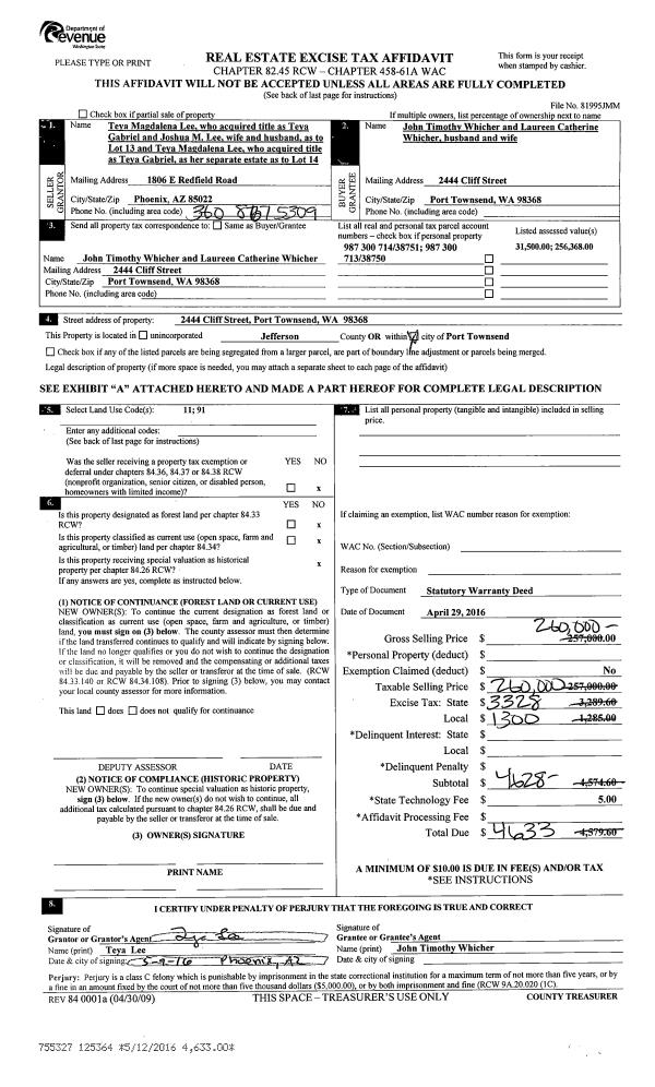 | Mailing Address: | 1240 W SIMS WAY #8 PORT TOWNSEND, WA 98368 | % Ownership: | 100.0000000000% |