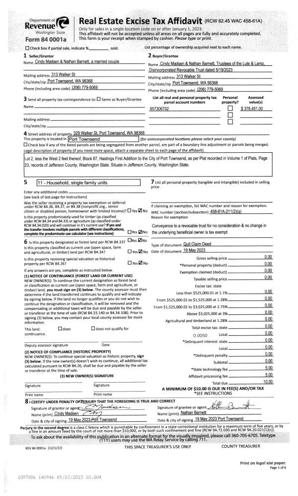 | 1 | 02/16/2023 | QCD | Quit Claim Deed | MARY J NOBLE | MARY & R DAVID NOBLE FAMILY TRUST | | | | 140582 | |