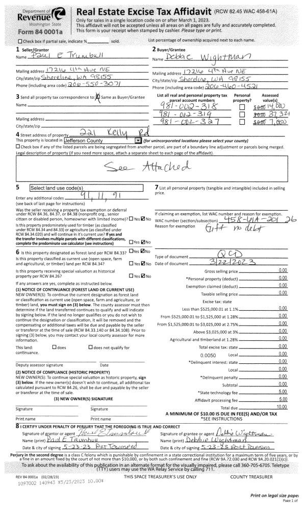 | Mailing Address: | 31 COLWELL ST STE B PORT HADLOCK, WA 98339-9701 | % Ownership: | 100.0000000000% |
