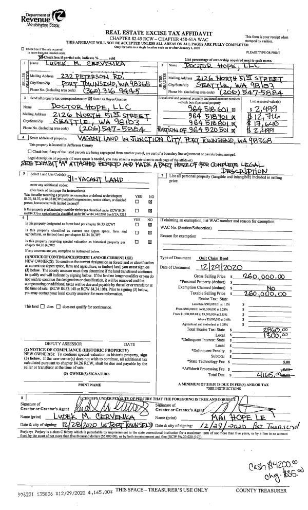 | Mailing Address: | 1322 WASHINGTON ST UNIT 1646 PORT TOWNSEND, WA 98368-6820 | % Ownership: | 100.0000000000% |