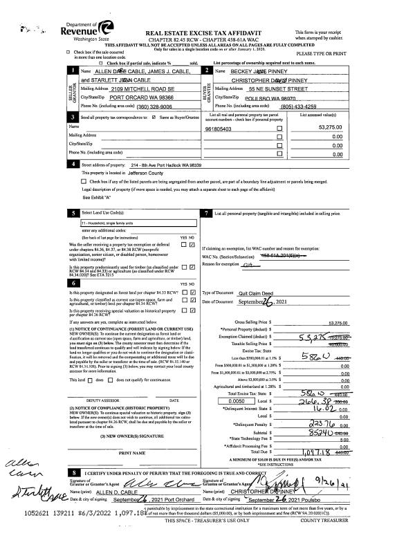 | 1 | 11/01/2021 | TRED | Trustee Deed | EDWARD M READ TRSTEE | CASPER L MAX | | | | 138612 | |