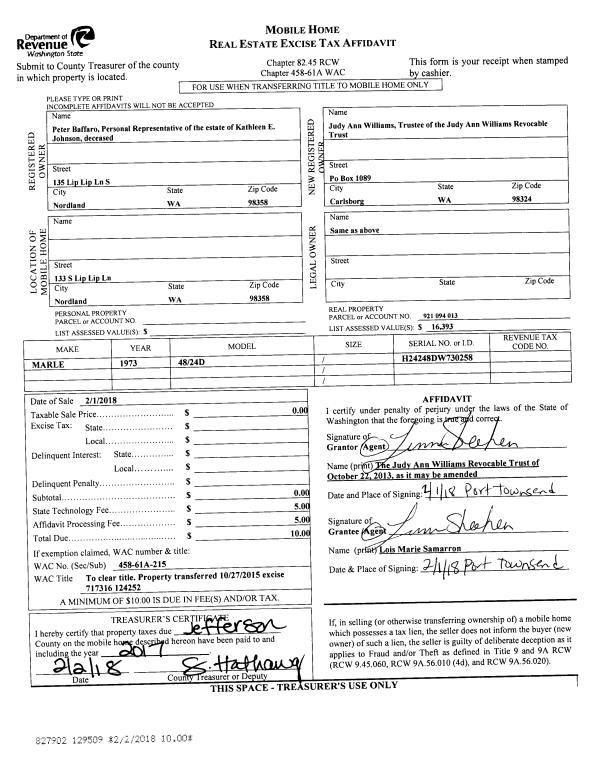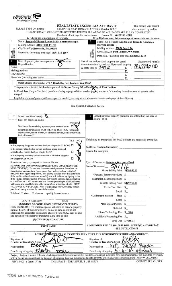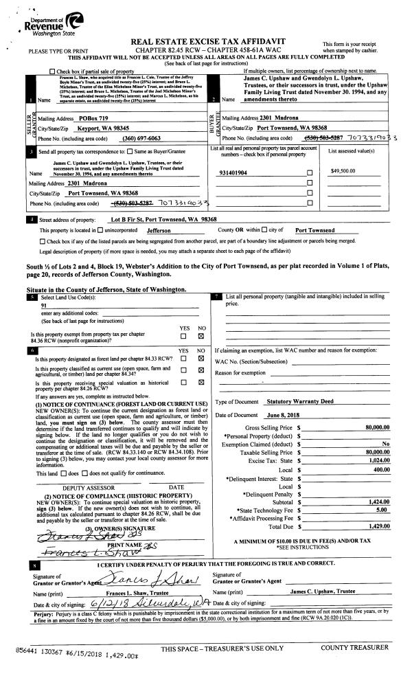 | Mailing Address: | 1146 13TH ST PORT TOWNSEND, WA 98368-8605 | % Ownership: | 100.0000000000% |