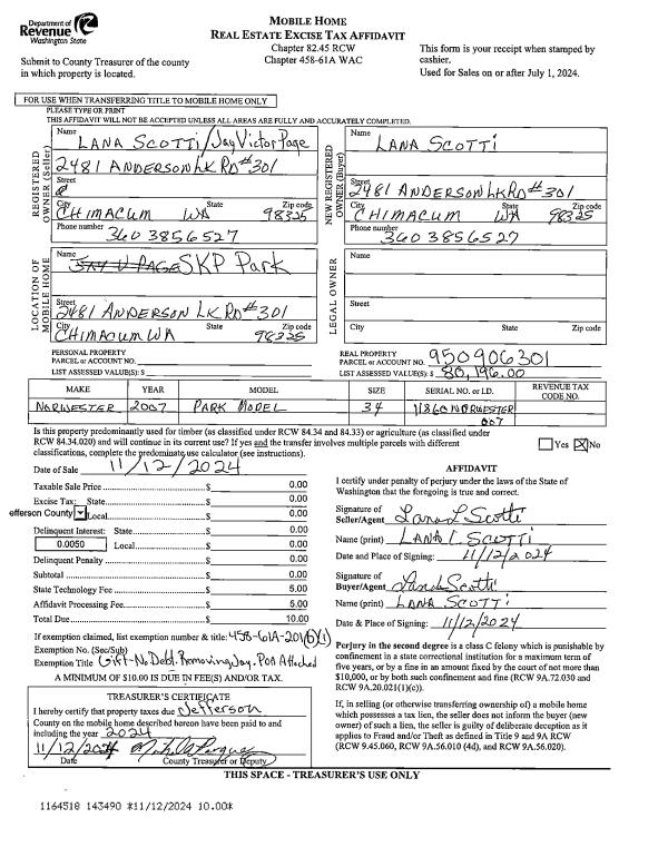 | Mailing Address: | 4513 ALBATROSS ST PORT TOWNSEND, WA 98368-0200 | % Ownership: | 100.0000000000% |