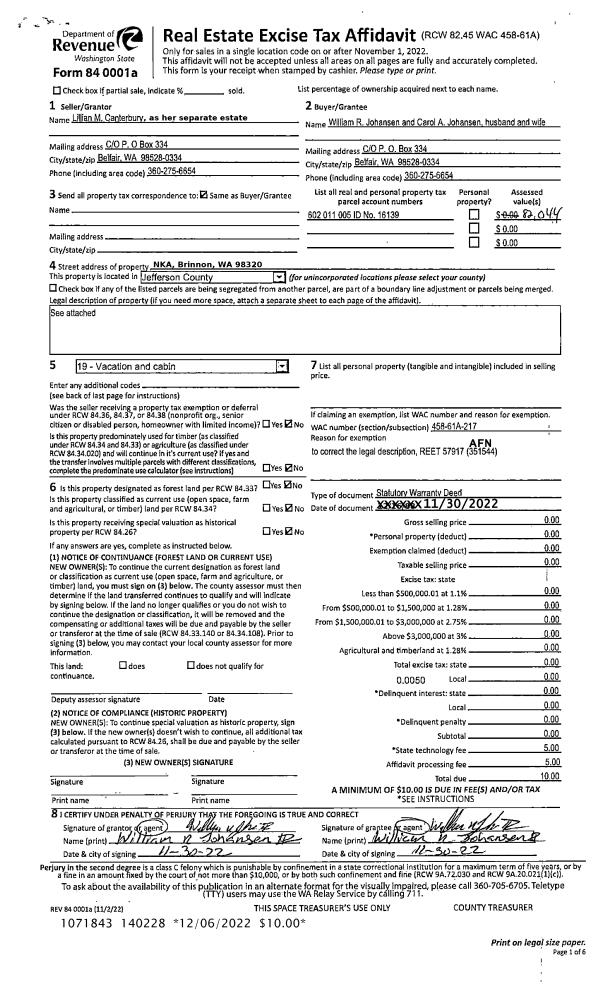 | 2 | 09/22/2021 | BSD | Bargain and Sale Deed | CANYON CREEK INVESTMENTS LLC | RICHMOND AMERICAN HOMES OF WA INC | | | | 0 | |