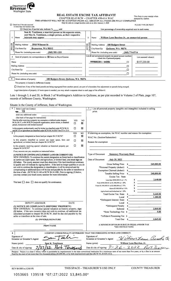 | 4 | 07/21/2016 | QCD | Quit Claim Deed | BAPCO LLC | KITSAP CREDIT UNION | | | | 0 | |