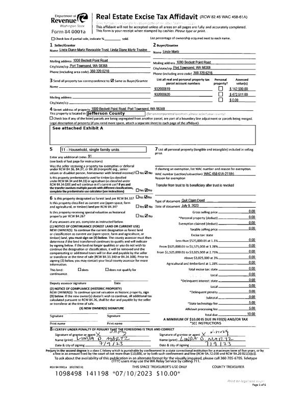 | Mailing Address: | 1311 29TH ST PORT TOWNSEND, WA 98368-5961 | % Ownership: | 100.0000000000% |