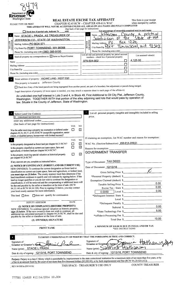 | Mailing Address: | 431 CEDAR AVE PORT HADLOCK, WA 98339-9586 | % Ownership: | 100.0000000000% |
