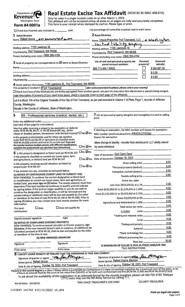 | Mailing Address: | 28 N VICTORY AVE PORT TOWNSEND, WA 98368 | % Ownership: | 100.0000000000% |