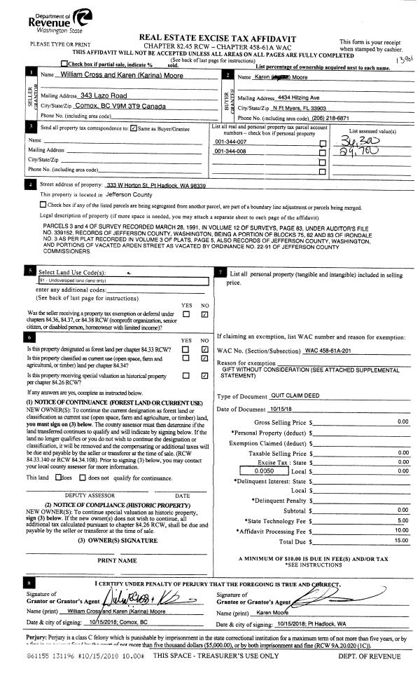 | Mailing Address: | 1114 GRANT ST PORT TOWNSEND, WA 98368-2921 | % Ownership: | 100.0000000000% |