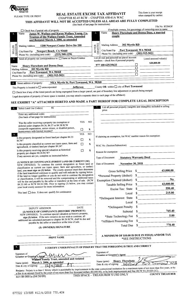| Mailing Address: | 1103 SHERIDAN ST PORT TOWNSEND, WA 98368-2960 | % Ownership: | 100.0000000000% |