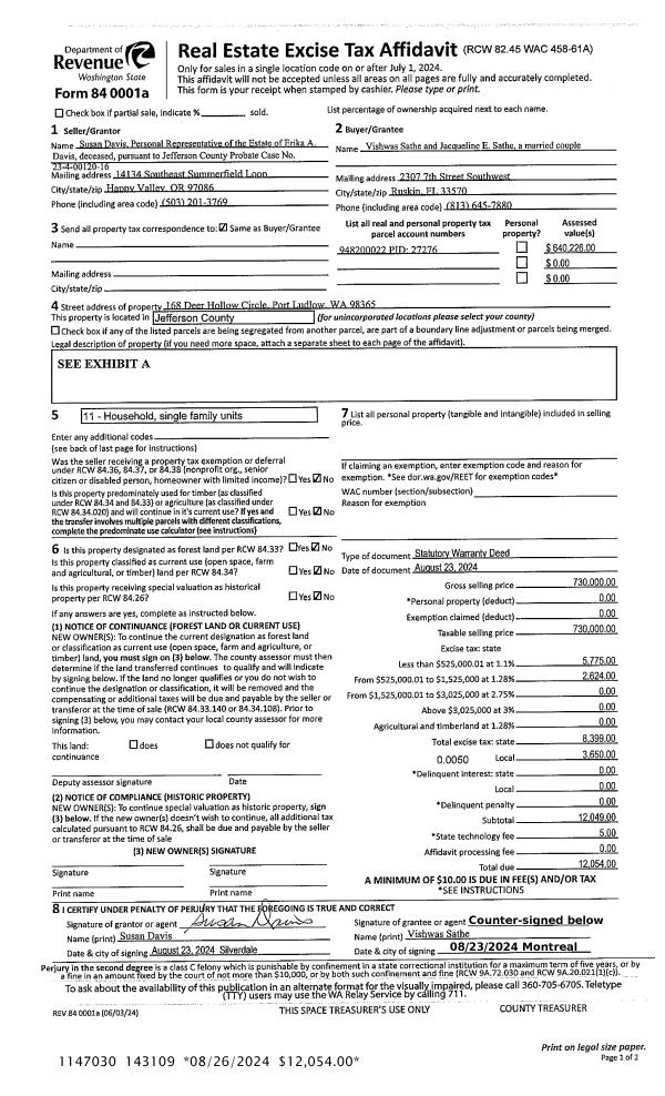 | 1 | 11/22/2024 | SWD | Statutory Warranty Deed | A LYNNE DUNHAM TRUSTEE | SHELLEY A FYE | | | $608,000.00 | 143574 | |