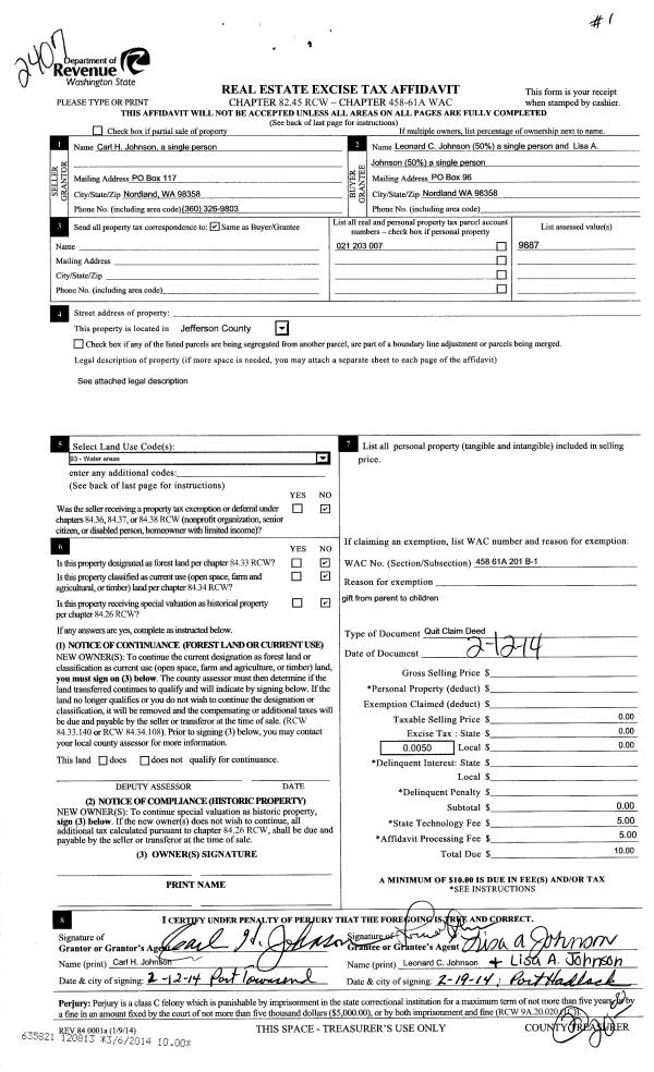 | Mailing Address: | 861 53RD ST PORT TOWNSEND, WA 98368 | % Ownership: | 100.0000000000% |