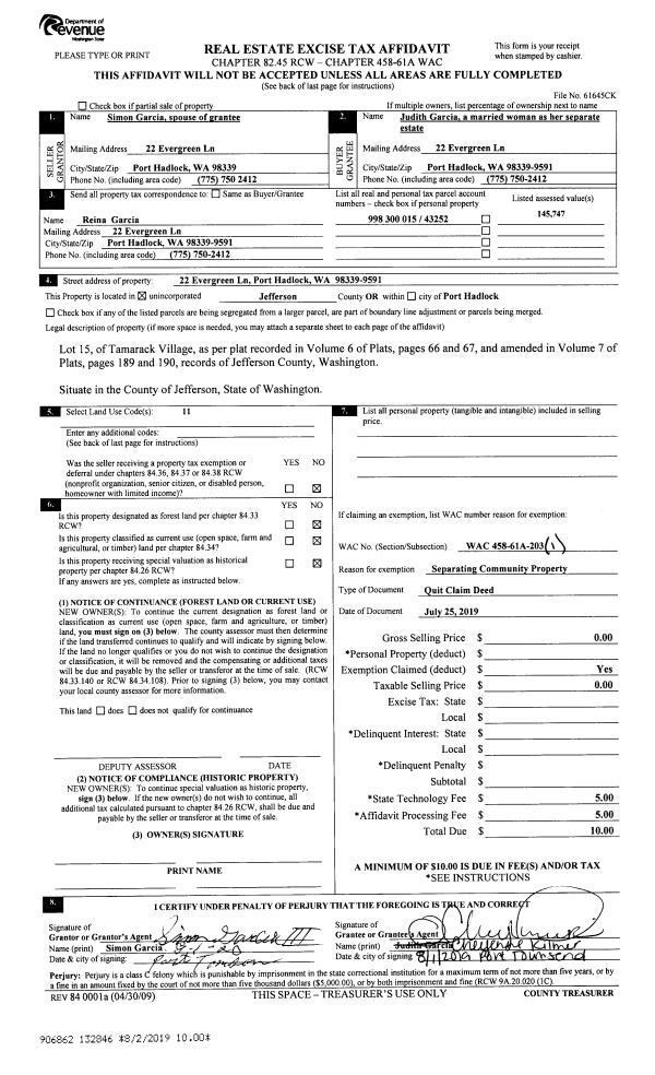 | Mailing Address: | 1304 GRANT ST PORT TOWNSEND, WA 98368-8640 | % Ownership: | 100.0000000000% |