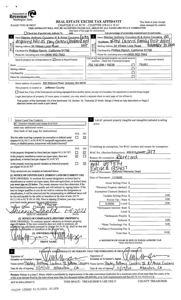 | Mailing Address: | MATTHEW PARTLOW 1224 21ST ST PORT TOWNSEND, WA 98368-7140 | % Ownership: | 100.0000000000% |