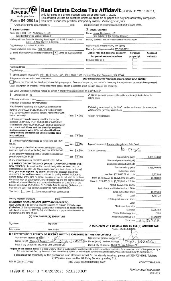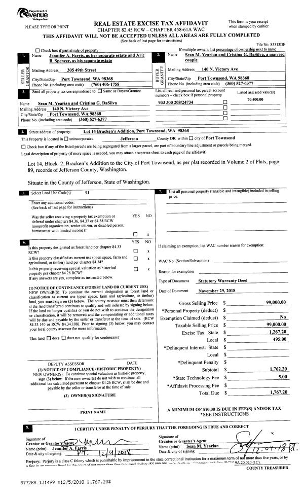| Mailing Address: | 1607 SHERIDAN ST PORT TOWNSEND, WA 98368-7614 | % Ownership: | 100.0000000000% |