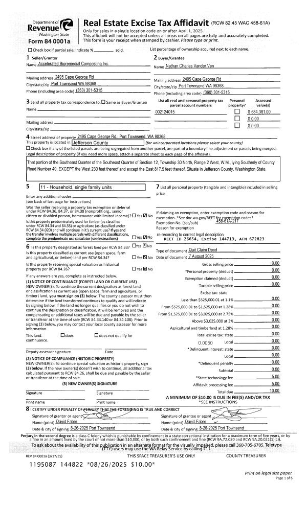 | Mailing Address: | MARY HOLLENDER JTWROS 1514 SHERMAN ST PORT TOWNSEND, WA 98368-8512 | % Ownership: | 100.0000000000% |