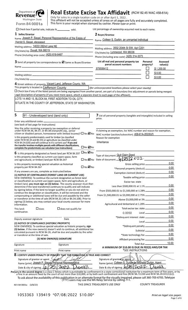 | 1 | 08/22/2022 | SWD | Statutory Warranty Deed | TERESA A NOMURA | DONALD J OLUND | | | $500,000.00 | 139733 | |