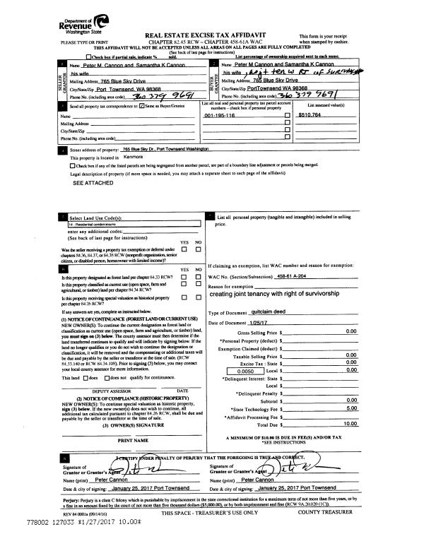 | Mailing Address: | 1433 21ST ST PORT TOWNSEND, WA 98368-7137 | % Ownership: | 100.0000000000% |