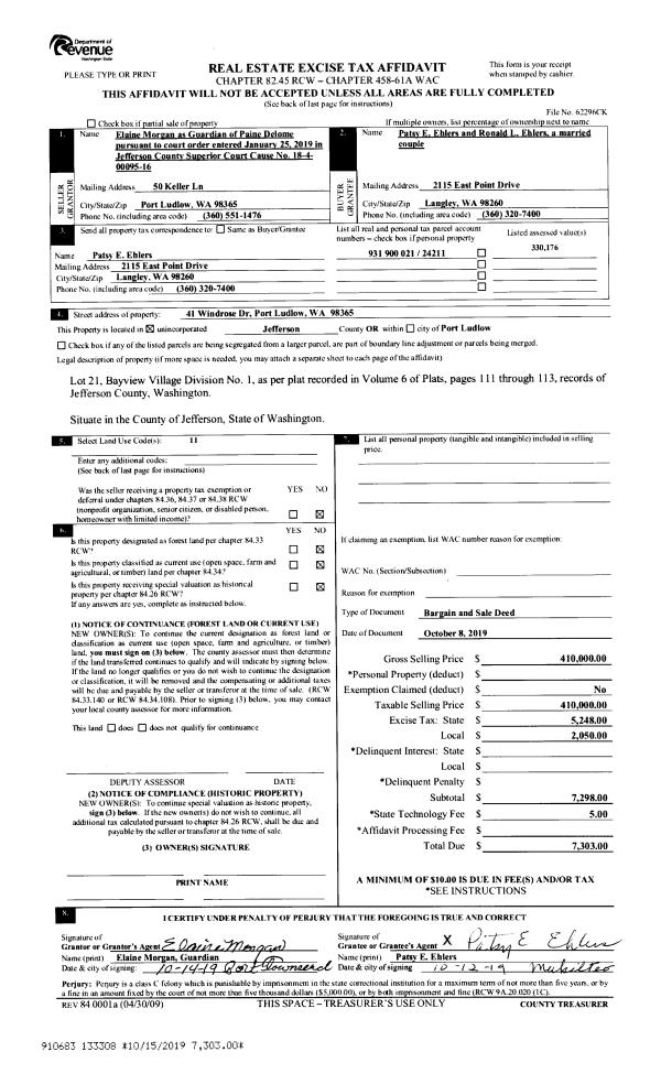 | 1 | 09/29/2020 | SWD | Statutory Warranty Deed | GARY R & TERESA CARSON | JAMES F & BONNIE J WALTERS | | | $500,000.00 | 135260 | |