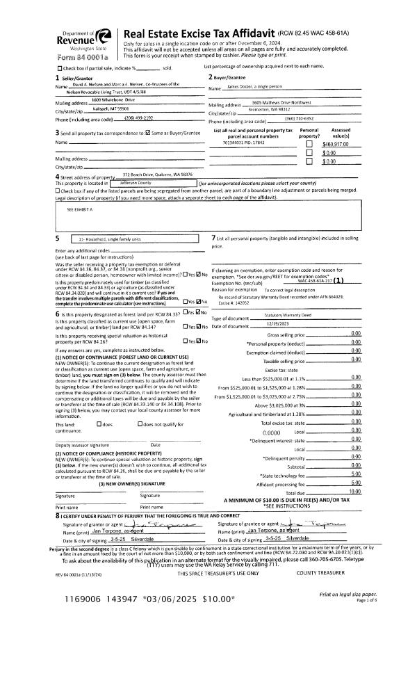 | Mailing Address: | 1920 14TH ST PORT TOWNSEND, WA 98368-8202 | % Ownership: | 100.0000000000% |