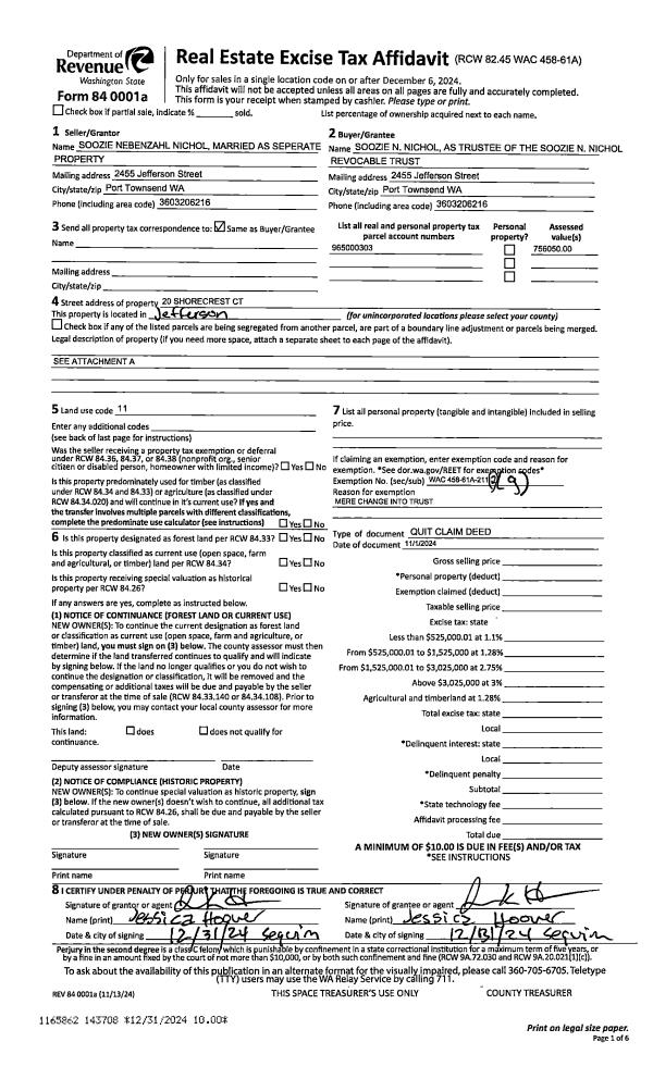 | 6 | 02/12/2020 | QCD | Quit Claim Deed | | | | | | 134133 | |