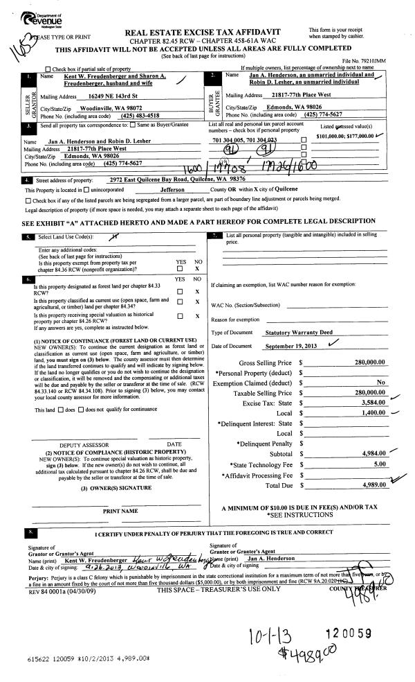 | Mailing Address: | 1805 14TH ST PORT TOWNSEND, WA 98368-8207 | % Ownership: | 100.0000000000% |