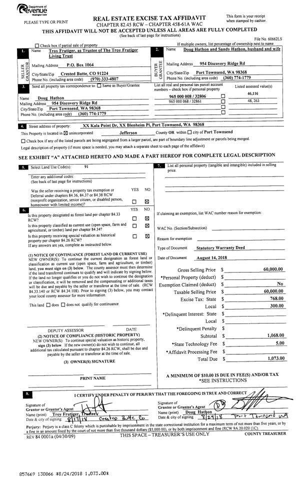 | Mailing Address: | PATRICIA A LANGE 1227 LOGAN ST PORT TOWNSEND, WA 98368-8212 | % Ownership: | 100.0000000000% |