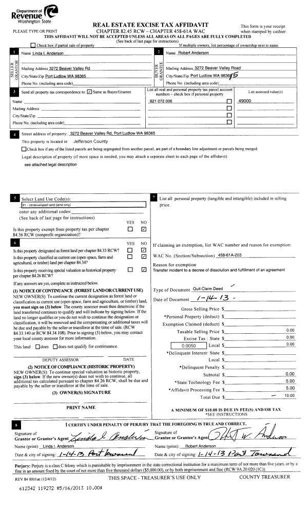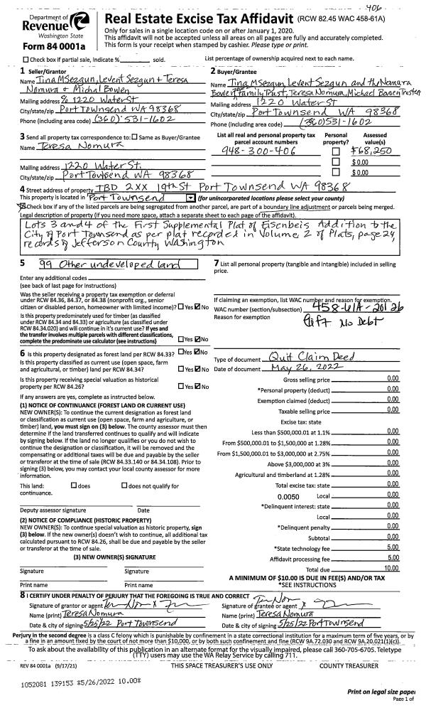 | Mailing Address: | 1113 LOGAN ST PORT TOWNSEND, WA 65368 | % Ownership: | 100.0000000000% |