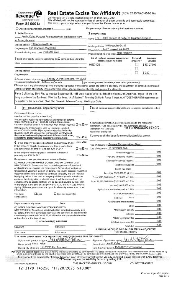 | Mailing Address: | 1104 THOMAS ST PORT TOWNSEND, WA 98368-2319 | % Ownership: | 100.0000000000% |
