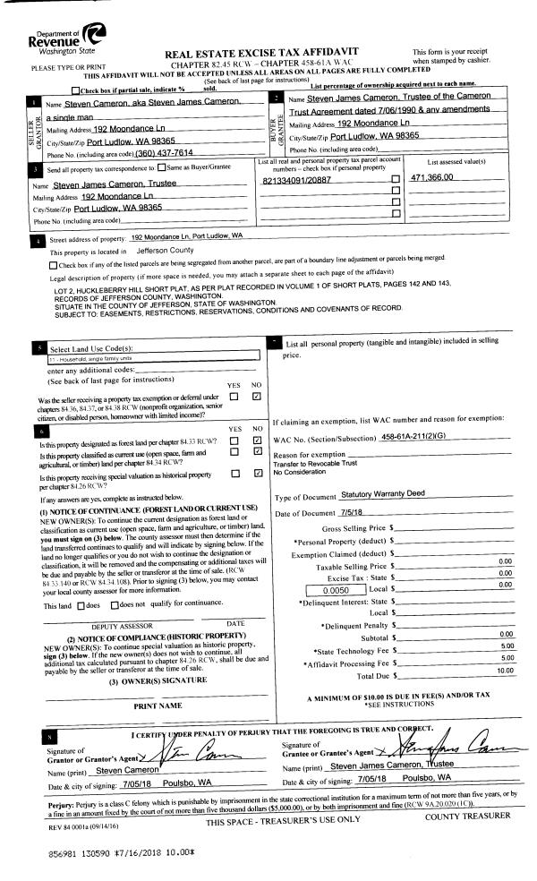 | Mailing Address: | SUSAN HOOVER LIVING TRUST 947 LOGAN ST PORT TOWNSEND, WA 98368-2337 | % Ownership: | 100.0000000000% |