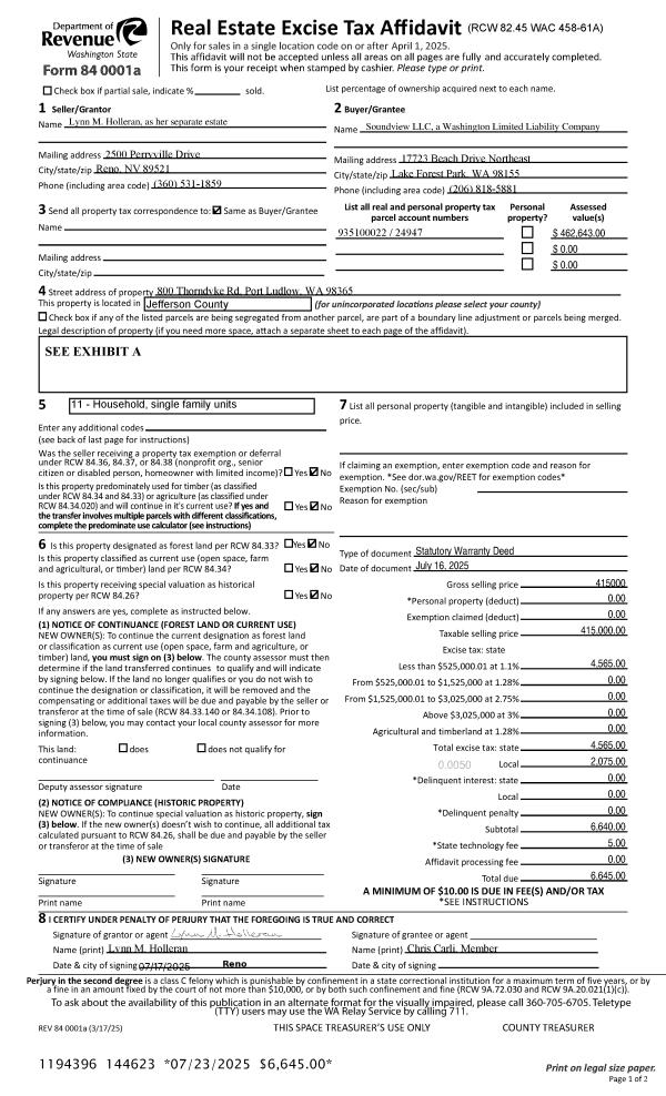 | Mailing Address: | 1809 10TH ST PORT TOWNSEND, WA 98368-2351 | % Ownership: | 100.0000000000% |