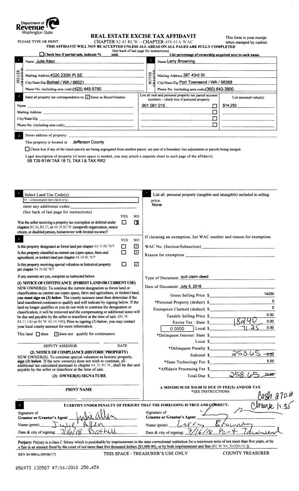 | Mailing Address: | ELSIE E KIMBALL TRUSTEE 491 DISCOVERY RD APT 108 PORT TOWNSEND, WA 98368-6134 | % Ownership: | 100.0000000000% |