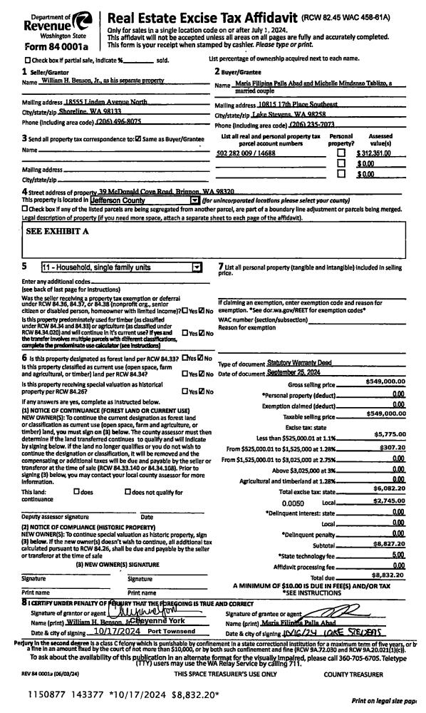 | Mailing Address: | 922 THOMAS ST PORT TOWNSEND, WA 98368-2317 | % Ownership: | 100.0000000000% |
