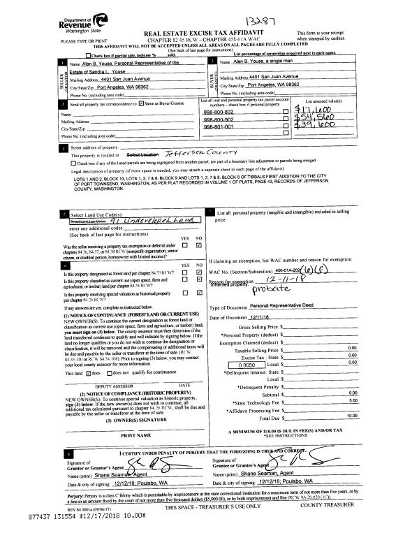 | Mailing Address: | ELIZABETH S DAVY TRUSTEE 830 TAYLOR ST PORT TOWNSEND, WA 98368-5532 | % Ownership: | 100.0000000000% |