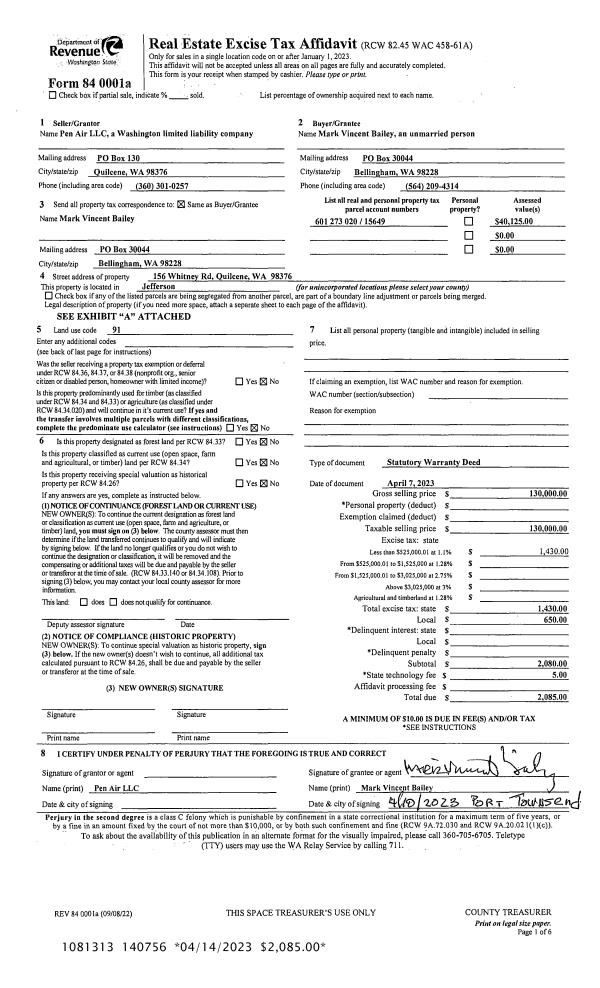 | 1 | 05/02/2023 | BLA | Boundary Line Adjustment | JEFFERSON CO PUBL HOSP DIST #2 | JEFFERSON CO PUBL HOSP DIST #2 | | | | 141125 | |
