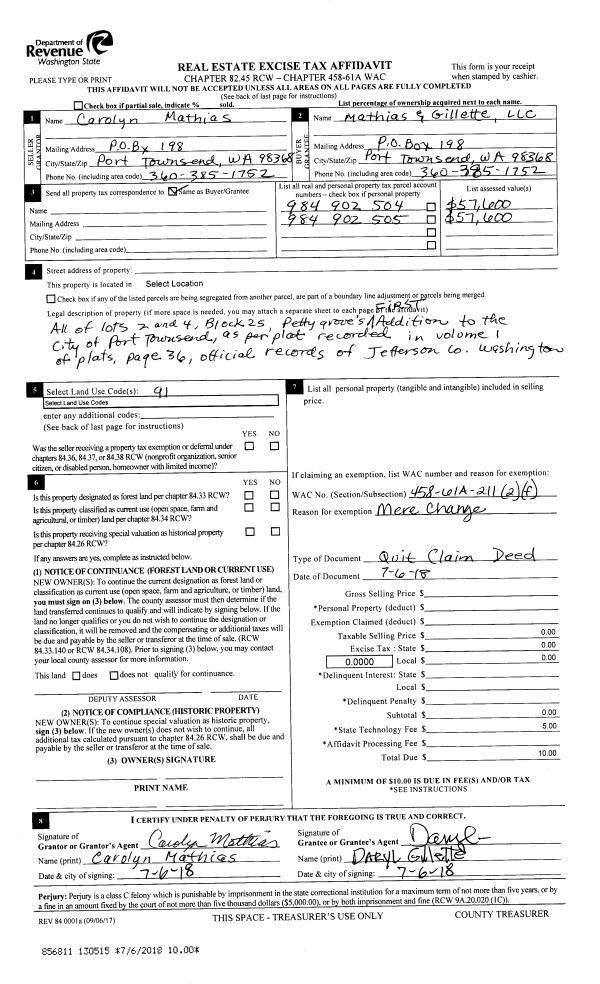 | Mailing Address: | 1584 7TH ST PORT TOWNSEND, WA 98368-2473 | % Ownership: | 100.0000000000% |
