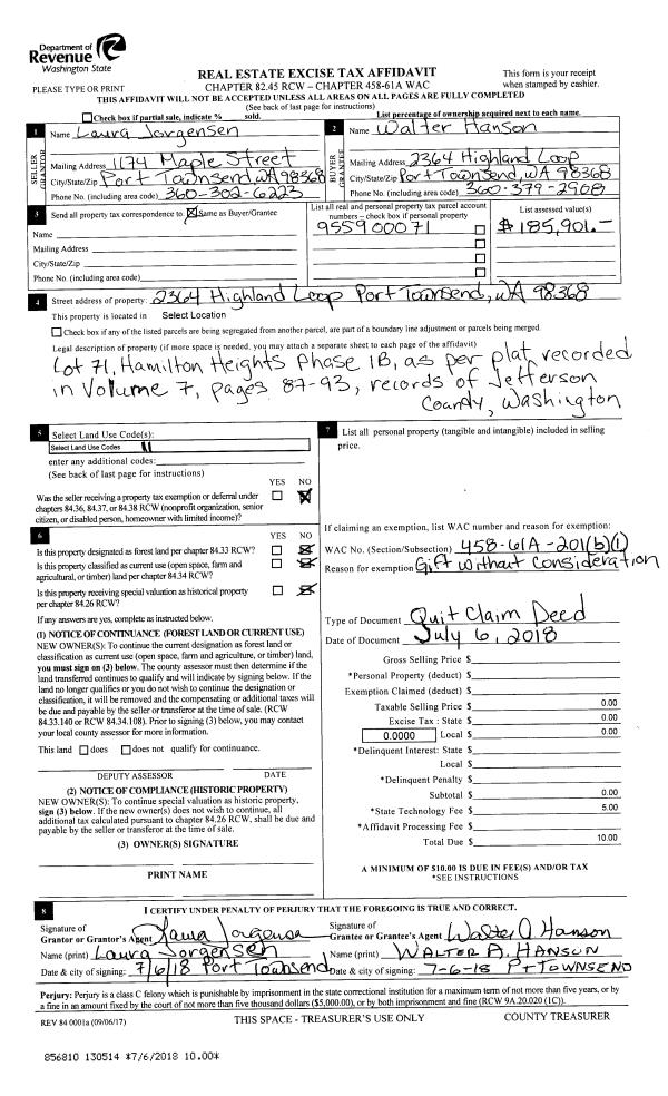 | Mailing Address: | 1566 7TH ST PORT TOWNSEND, WA 98368-2473 | % Ownership: | 100.0000000000% |