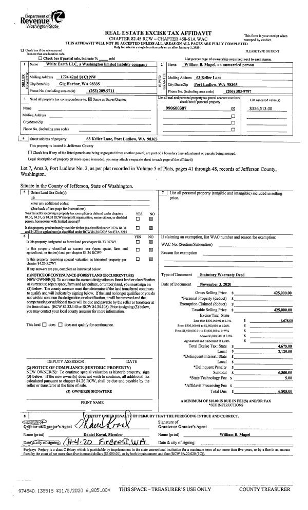 | Mailing Address: | 830 TAYLOR ST PORT TOWNSEND, WA 98368-5532 | % Ownership: | 100.0000000000% |