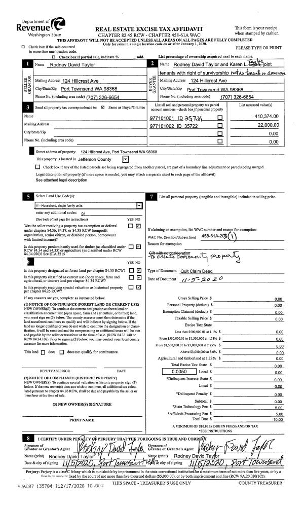 | Mailing Address: | PO BOX 1642 PORT TOWNSEND, WA 98368-0129 | % Ownership: | 100.0000000000% |