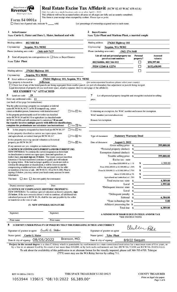 | 2 | 10/09/2019 | SWD | Statutory Warranty Deed | DONALD J BARROWS | SATCHWORKS AUTO REPAIR INC | | | $373,000.00 | 133281 | |