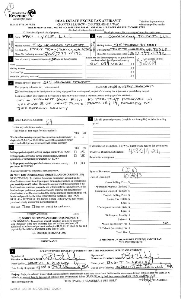 | Mailing Address: | 834 SHERIDAN ST PORT TOWNSEND 98368-2443 | % Ownership: | 100.0000000000% |